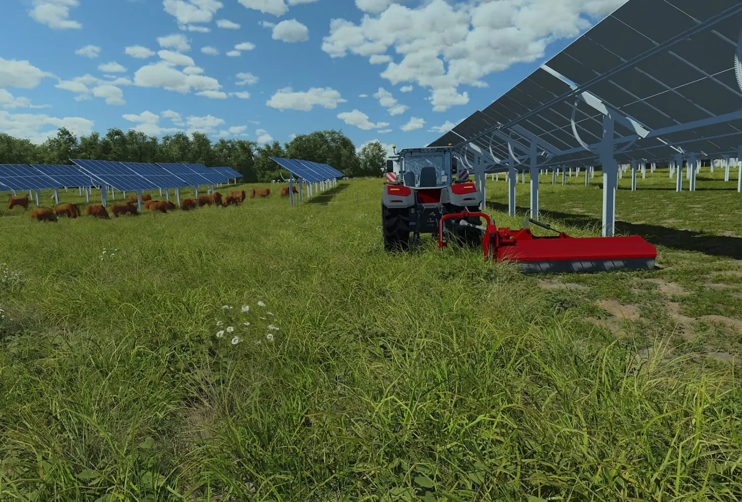Samsolar développe ses projets agrivoltaïques en tenant compte des besoins spécifiques de l’exploitation agricole. Les installations sont conçues pour s’intégrer harmonieusement dans le fonctionnement de la ferme : elles permettent la circulation des engins agricoles, assurent la sécurité des animaux grâce à des dispositifs comme les clôtures ou la vidéosurveillance, et facilitent l’accès à l’eau et à la nourriture.
