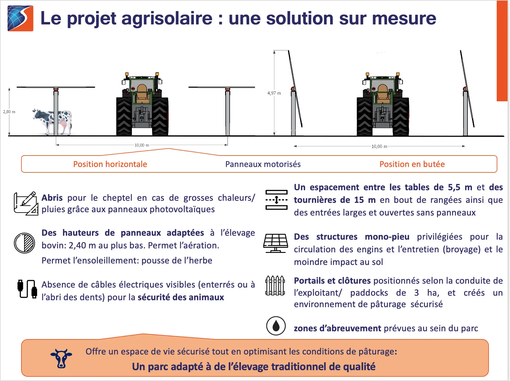 Une conception du parc et des aménagements associés élaborée en étroite concertation avec les agriculteurs, pour optimiser l’espace de vie des animaux et les conditions de travail agricole